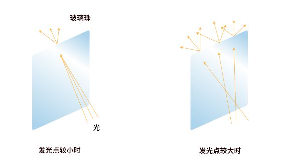 吊燈的玻璃珠起到了棱鏡的作用。當光線(xiàn)由較小的發(fā)光點(diǎn)進(jìn)入玻璃珠,會(huì )自動(dòng)折射成七種顏色。相反,當它由較大的發(fā)光點(diǎn)入射,進(jìn)入玻璃珠的光就會(huì )從各個(gè)方向分別擴散,相互混合后再返回到原始的光色。